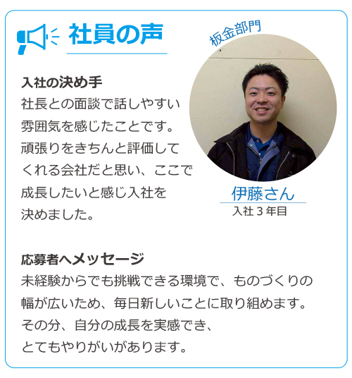 | 福利厚生 | 社員旅行・健康診断・制服貸与・ お食事会など |
