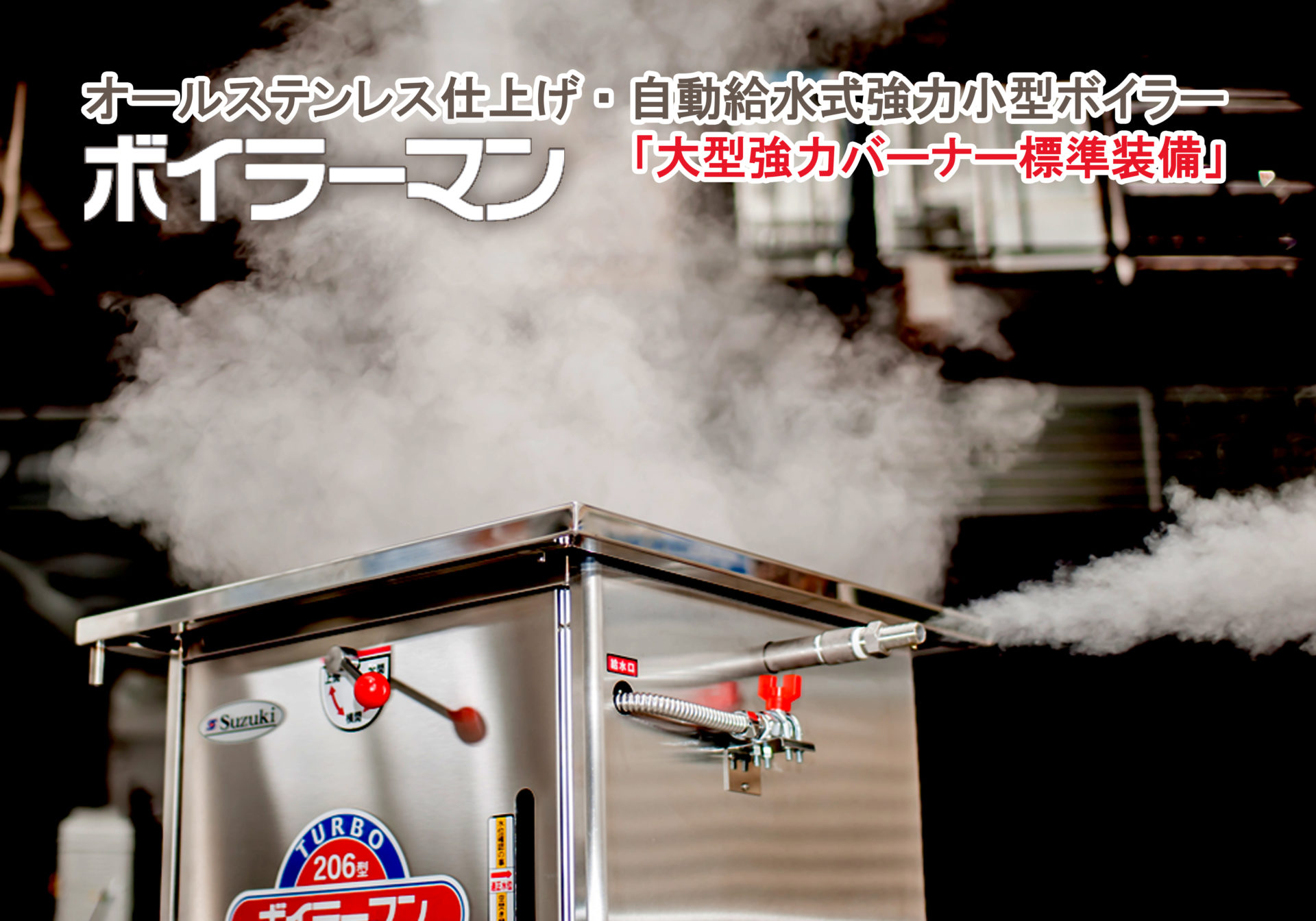 に大量の蒸気をつくる強力バーナー!