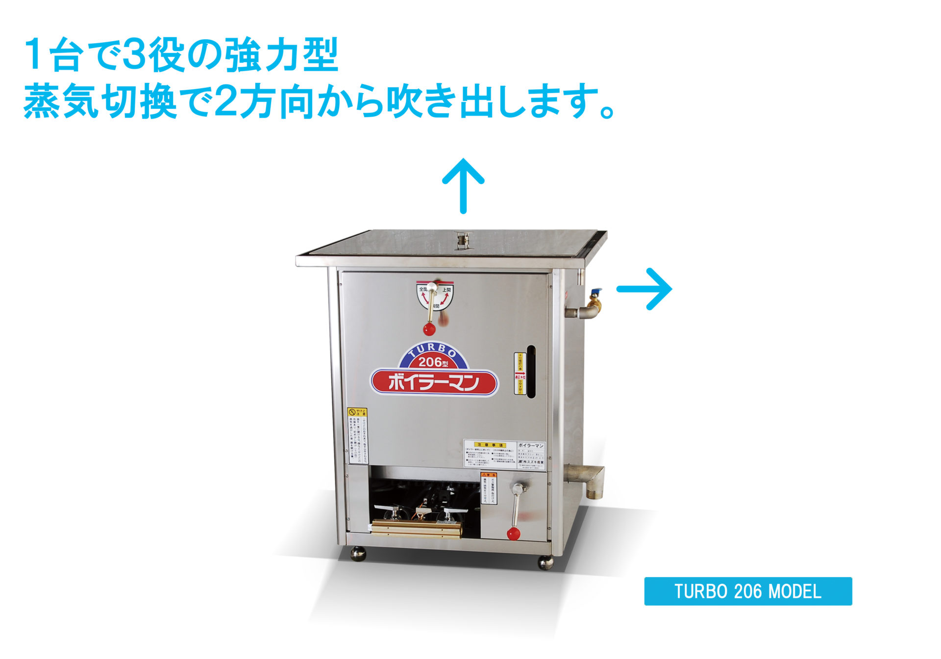 - 御要望により、蒸機取り出し口を左側に取付けが可能です。 ※規格品は右側です
