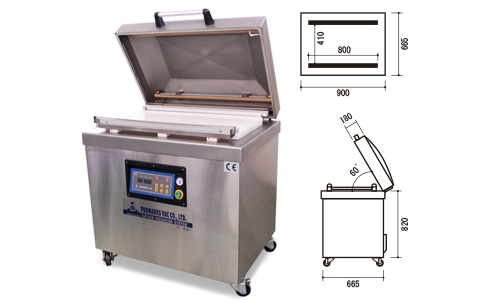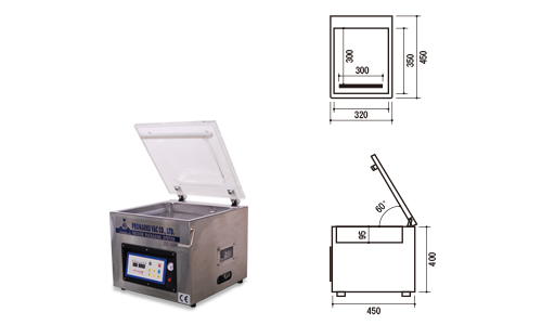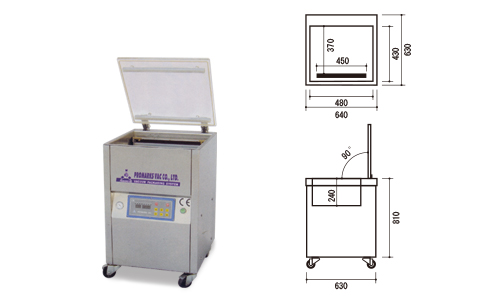 | 型 式 | 外形寸法 | 有効シール巾 | チャンバー内寸法 | 架台(オプション) | 電源 | 真空ポンプ |