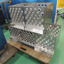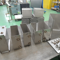 ステンレスの板を定寸に切断し曲げ加工をして、カバーなどの部材を製作します。
