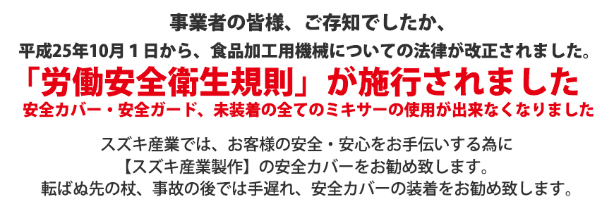 2. 既存のミキサーの全てに於いて安全カバーの装着が義務付けられました。