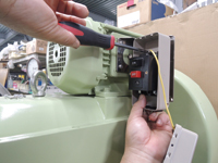 ④安全カバーを本体にセットする為、ビス穴を3ヶ所あける。
